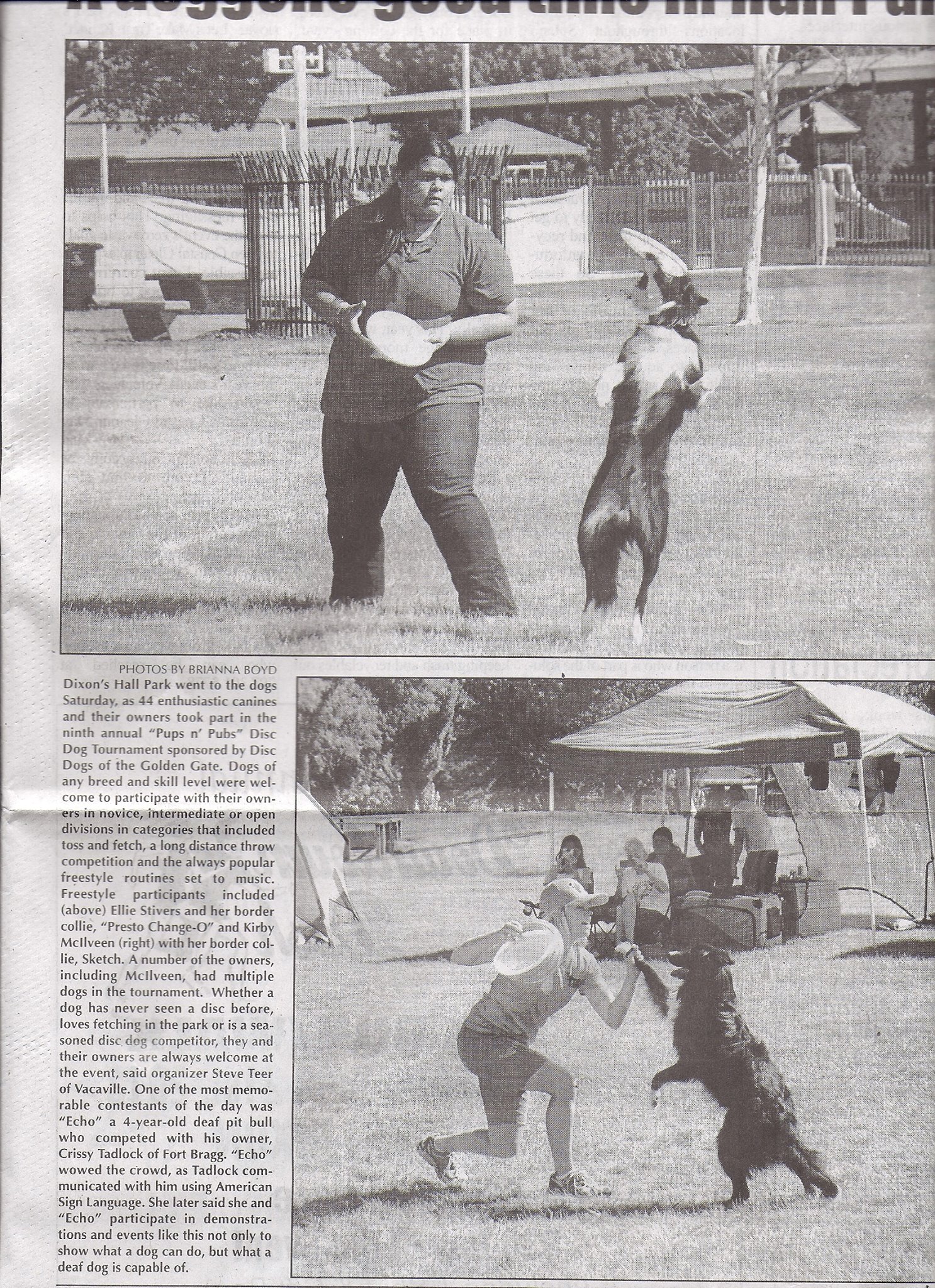 Books • Dogs in Cars by Lara Jo Reagan Newspapers • The Dixon Tribune • Tampa Bay Times Magazines • Dog Sport Magazine (May/June 2011 issue) • Modern Dog (Summer 2010 issue, page 49) Television • Purina Incredible Dog Challenge Western Regionals 2011 & 2013 in "Freestyle Flying Disc" • Purina Incredible Dog Challenge Western Regionals 2012 in "Speed and Catch" Commercials • "We Came to Party" (CANIDAE Pet Foods Commercial)